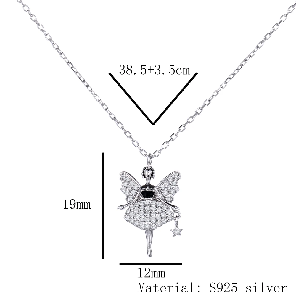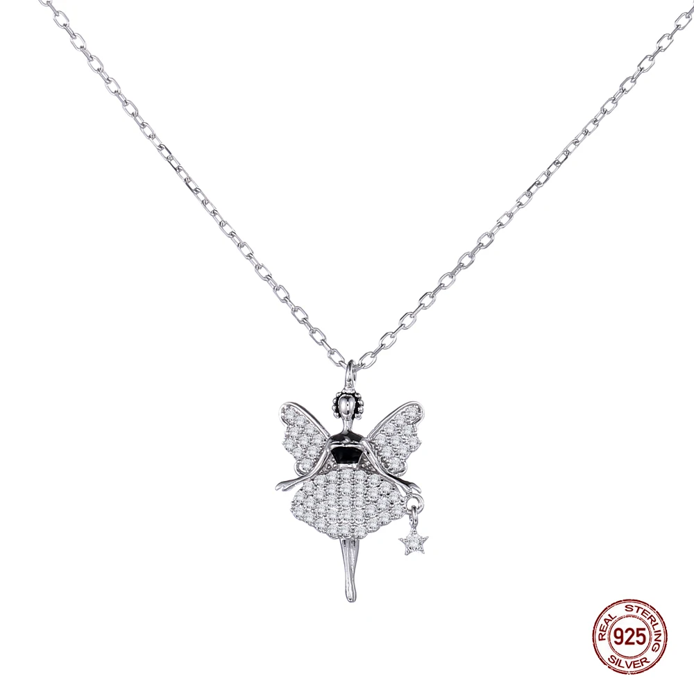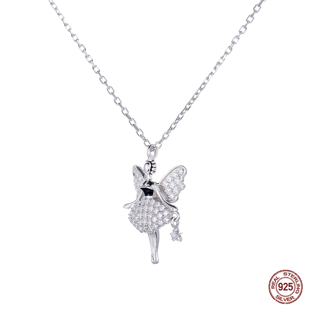Hot Sale 925 Sterling Silver Fairy Pendant Zircon Stone Inlaid Necklace Women Jewelry Gift