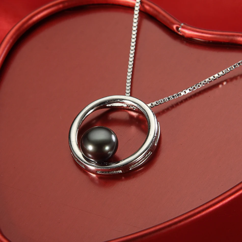 Best Seller FEIGE Simple style 7-8mm Black Freshwater Pearl Necklace Real 925 Sterling Silver Pendant Necklaces