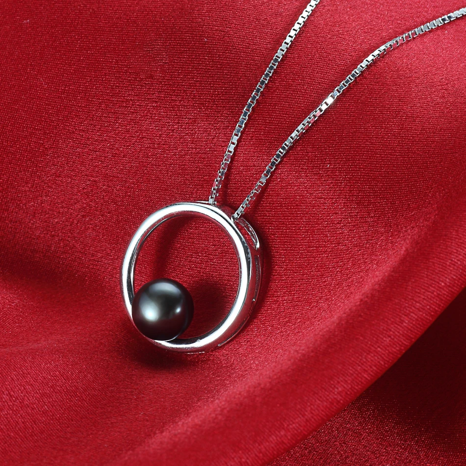 FEIGE Simple style 7-8mm Black Freshwater Pearl Necklace Real 925 Sterling Silver Pendant Necklaces